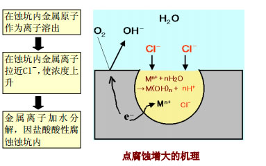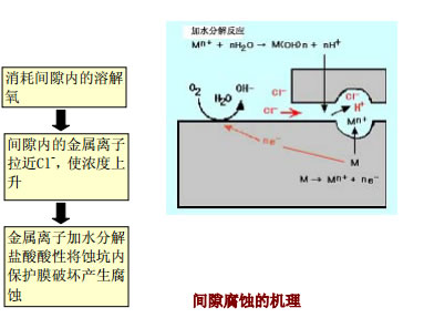 不銹鋼由于材料的不均勻性、應(yīng)力的影響、環(huán)境方面的條件(主要為氯化物離子的存在),部分鈍 態(tài)保護膜被破壞而產(chǎn)生局部腐蝕。以下為有關(guān)具有代表性的 3 種局部腐蝕,表示其腐蝕的機理。